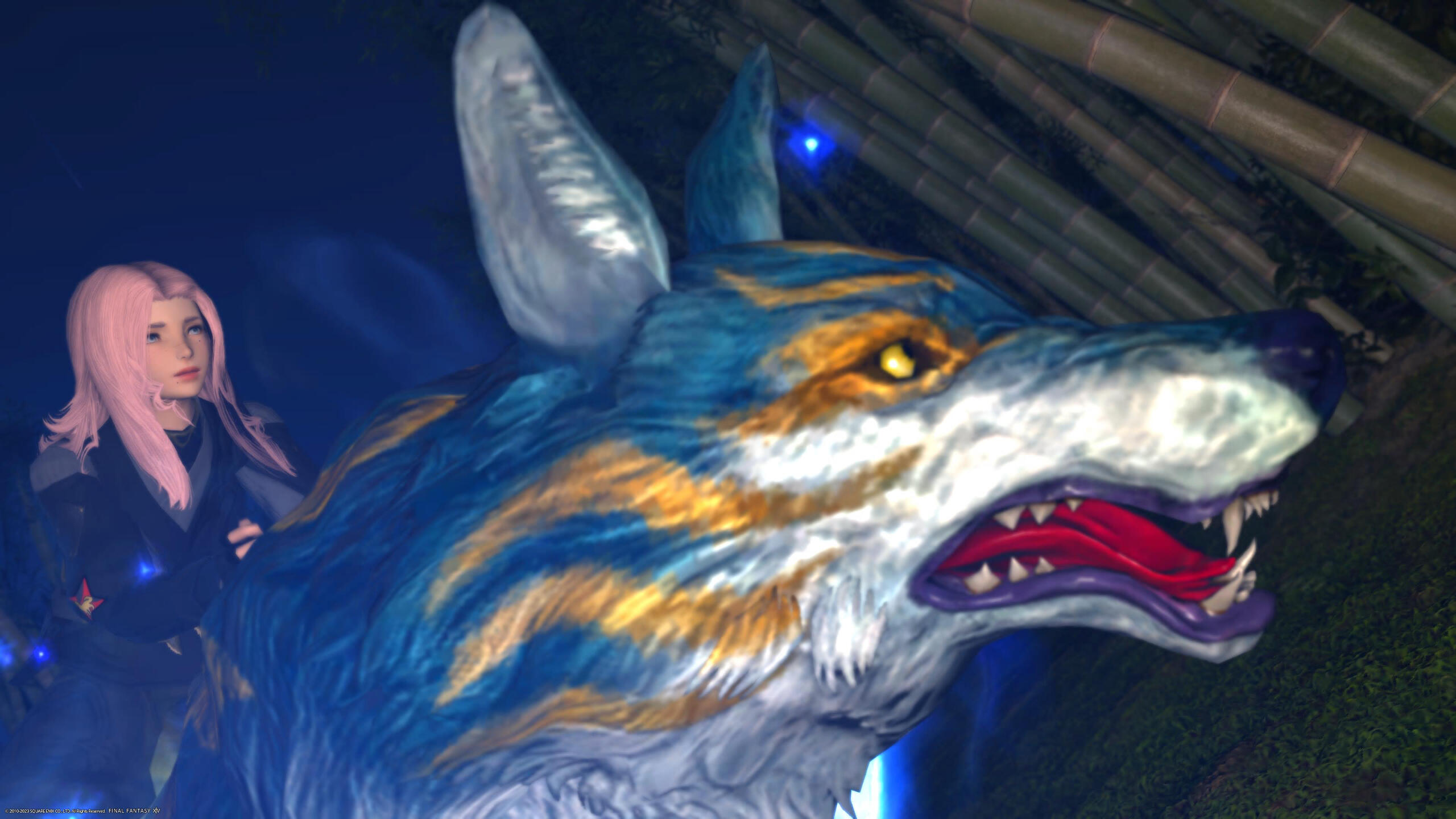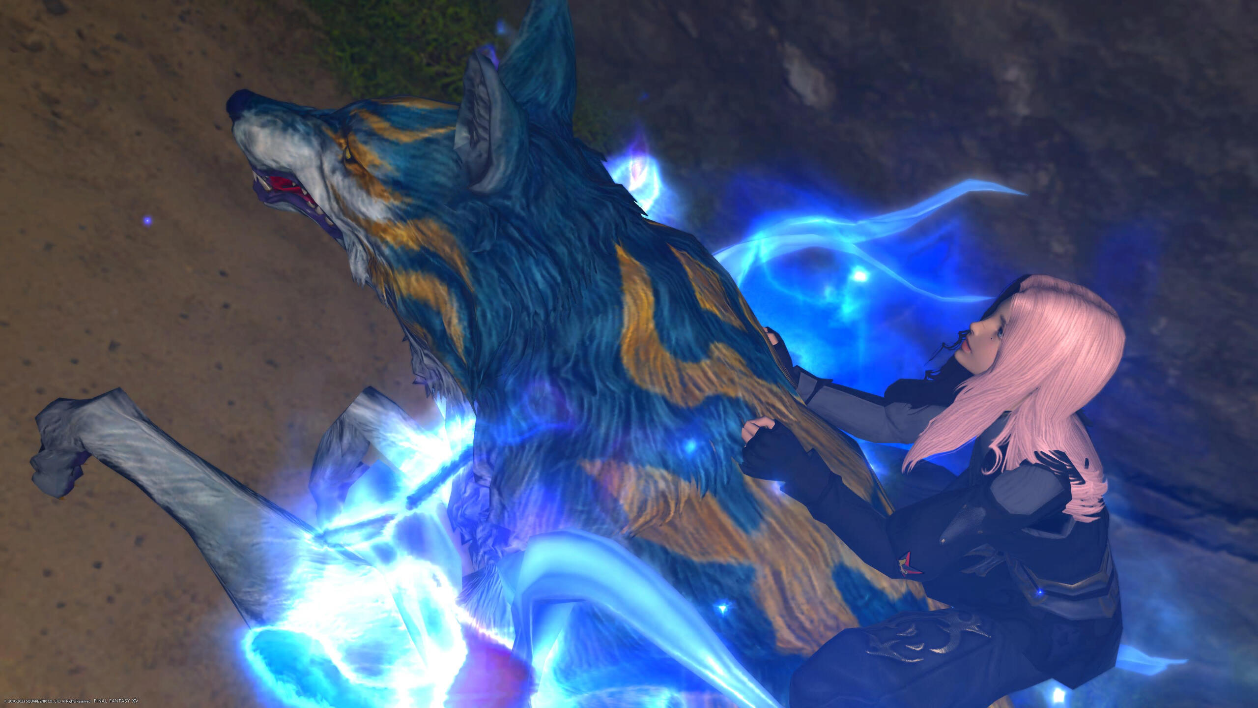 While Kimiko was on her way through Othard, she came across a magnificent creature. It’s blue glow was unnatural, and that of myths. It’s fangs as long as the blade at her hip. The animal was being pursued by a large group armed to the feet, they threw spears, arrows, and bolts of fire at it. After a terrifying explosion set by the individuals pursuing the beast, Kimiko made her mind up to help the animal. She killed the first few with out giving warning of her attack, then the group realized they were being ambushed. Kimiko was skilled but still outnumbered and wasn’t a big threat size wise. The group split up with a assault on both the beast and Kimiko. Oddly, killing almost got easier for her as she started to cut them down, her blades dripping in blood, and her clothing as well. After a valiant effort, Kimiko would finally be overcome. This is the moment she saw a flash of blue tear through one of her subduers throats, and it didn’t stop until they were all dead. The two of them beaten half to death stared into each others eyes, neither of them blinked, both of them dripping in blood. Fortunately, it was like they understood each other, and the pain of their wounds was nothing compared to the one in their hearts. They found shelter and healed together, then set off on their paths. From that day whenever Kimiko should call, the blue magnificent being comes to her aid, and you will see a flash running off.